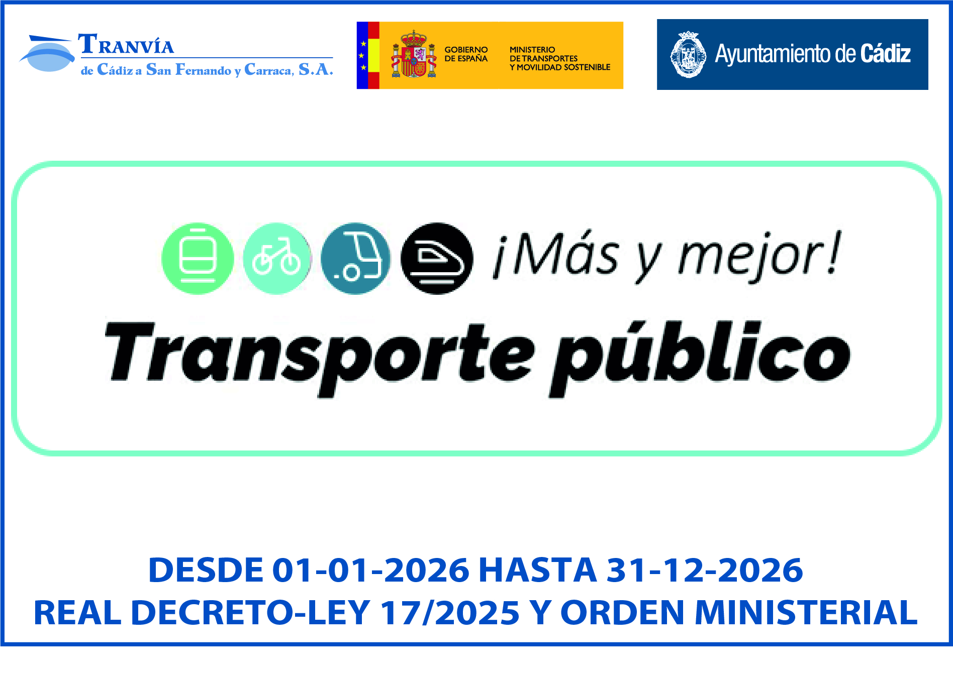 Aquí puede comprobar las TARIFAS QUE RECIBEN FINANCIACIÓN DEL EXCMO. AYUNTAMIENTO DE CÁDIZ Y DEL MINISTERIO DE TRANSPORTES Y MOVILIDAD SOSTENIBLE en las líneas de Transporte Urbano de Cádiz