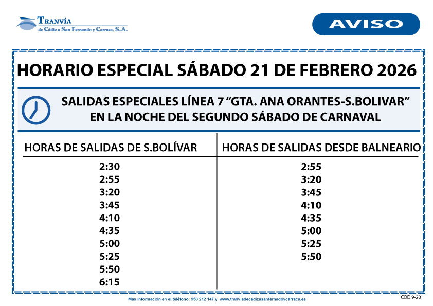 Con motivo de la celebración del Carnaval se prolongan las horas de finalización de los servicios en las siguientes fechas: